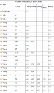 Trong đó, các khoản tiết kiệm tại kỳ hạn từ 1 tháng đến 5 tháng hưởng chung lãi suất là 3,9%/năm. Đây cũng là mức lãi suất huy động vốn khá cao áp dụng cho kỳ hạn dưới 6 tháng trên hệ thống ngân hàng hiện nay.